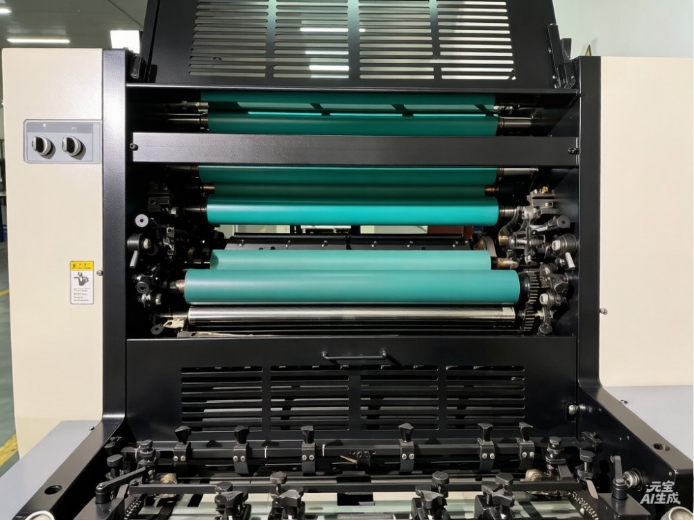 3) Tá struchtúr meicniúil tromshaothair ag an bpreas comhdhéanta de bhonn lárnach iarann ​​teilgthe, plátaí taobh, agus rollóirí. Tugann an struchtúr láidir seo ard-neart agus rigidity chomh maith le cumas sármhaith caitheamh-resistant agus turraing-ionsú don phreas, rud a ráthaíonn go n-oibríonn an preas go seasta agus go réidh le linn oibriú ardluais agus go gcoimeádann sé brú priontála comhsheasmhach le linn an phróisis.